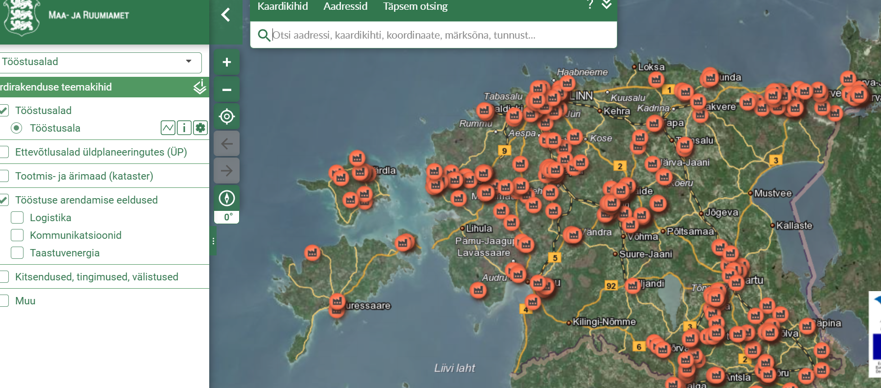Kaardirakendus koondab tööstuseks ja tootmiseks sobivate alade ruumiandmed. Näha on nii üldplaneeringutega kavandatud ettevõtlusalad kui ka juba arendamisel tööstusalad. Iga ala kohta saab rakenduses vaadata näiteks kaugust riigiteeni, kaubasadamani, lennujaamani, alajaama võimsust, tööstusala tüüpi, detailplaneeringu staatust jom. Lisaks on eraldi kihtidel info lennujaamade, raudtee- ja teedevõrgustiku, elektri-, gaasi-, side-, veevarustuse jm taristu kohta ning esitatud loodus ja muinsuskaitse kitsendused. Kokku on rakenduses enam kui 30 teemal üle 120 andmekihi, millest enamik tulevad teistest andmekogudest automaatselt.